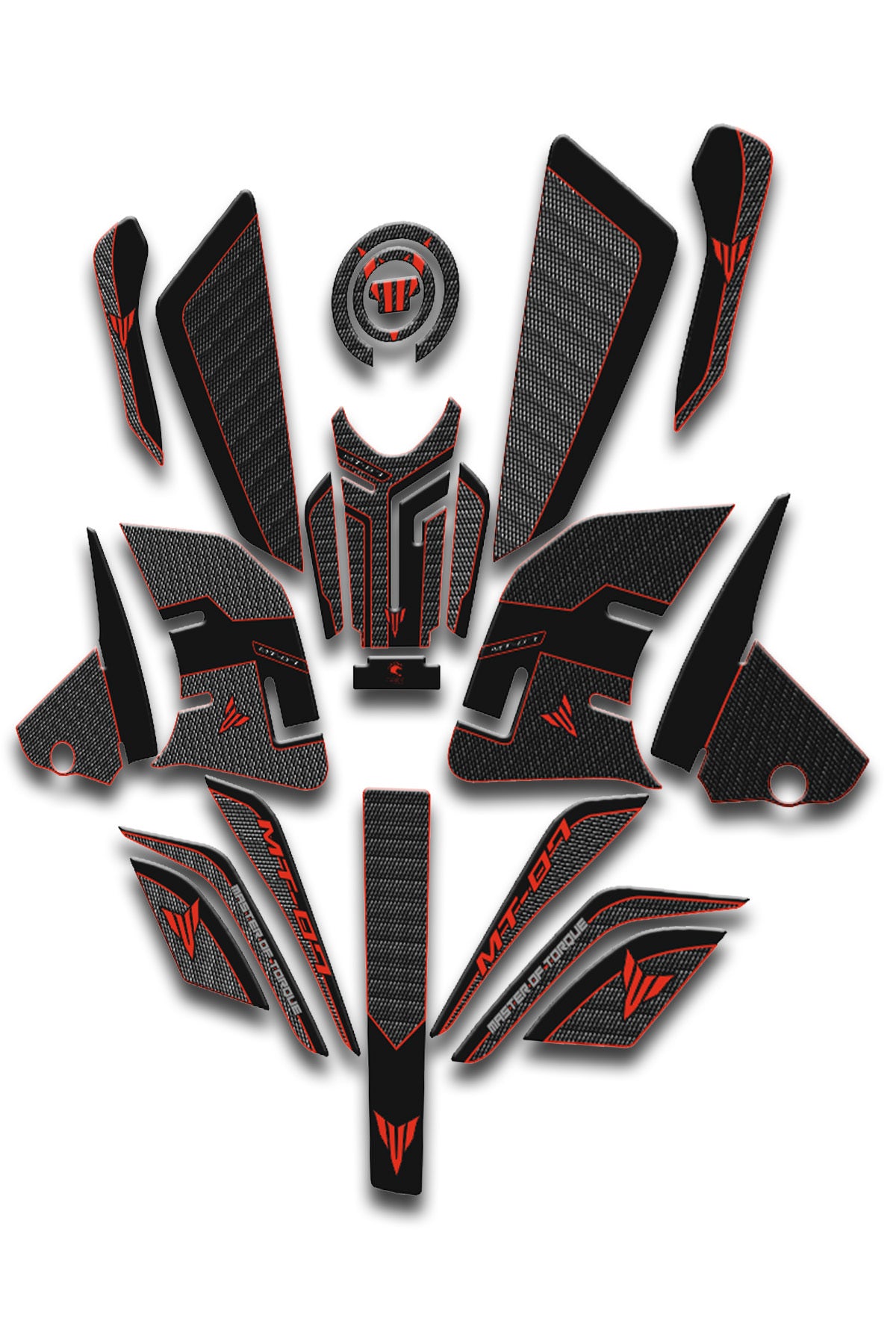 Mt07 2021-24 tank pad seti karbon kýrmýzý